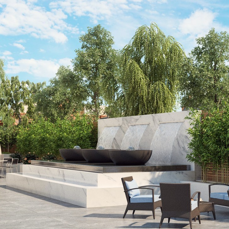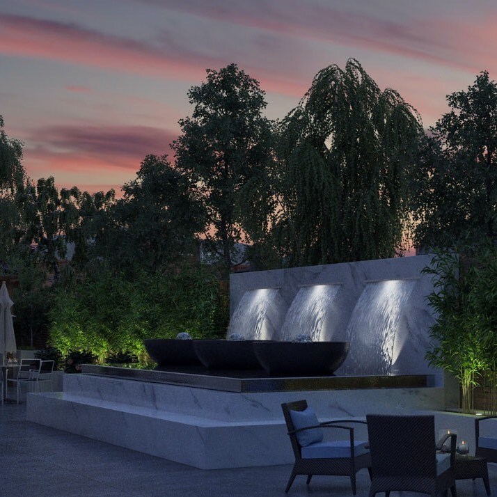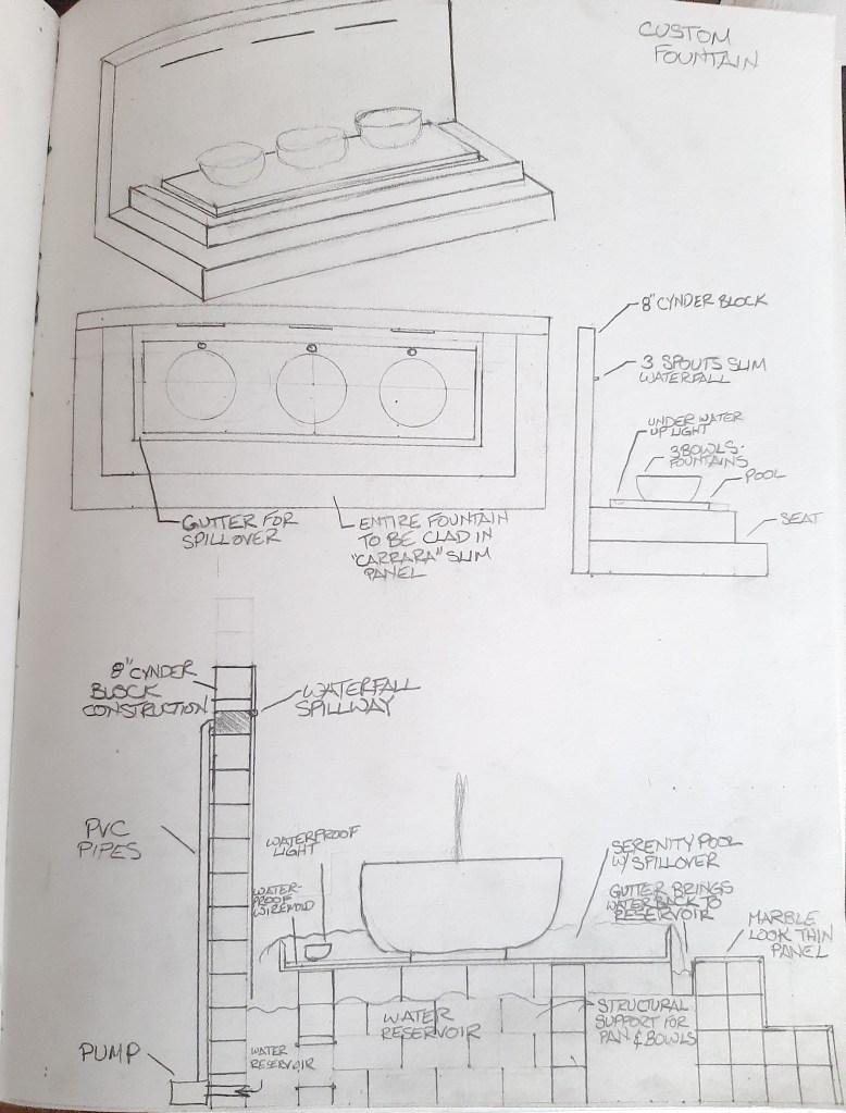 This fountain is part of a larger design of an outdoor oasis.