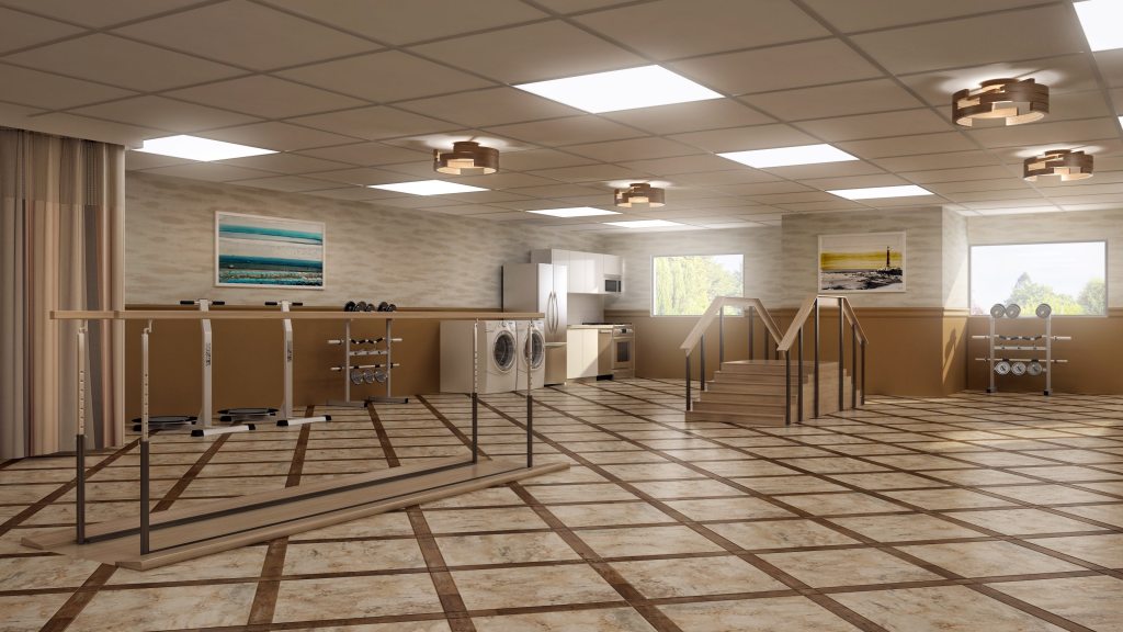 This Care and Rehabilitation Center located in New Bedford, Massachusetts, the home of Moby Dick, was very proud of their fishing and whaling history. They requested that their history be included in the design.
